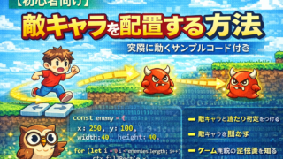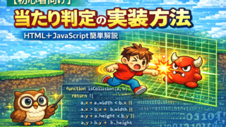 🔰 この記事で分かること攻撃判定とは何か(当たり判定との違い)プレイヤーの攻撃が敵に当たったかを判定する方法JavaScriptでの実際に使えるサンプルコード敵を「倒せる」ようにする基本構造この記事を読み終えるころには、「敵に触れるだけのゲ...