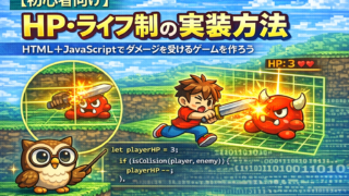 🔰 この記事で分かることHP・ライフ制とは何か敵に当たったときにHPを減らす方法JavaScriptで使えるシンプルなサンプルコードゲームオーバーへつながる基本構造この記事を読み終えるころには、「当たったら即終了のゲーム」から「HPが減って...