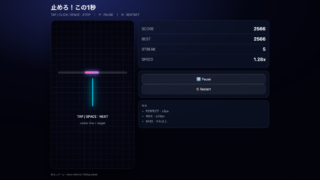 まずは遊んでみてください※ ルール説明はありません。まずはクリック・タップ・Spaceキーで止めてみてください。以下の画像をクリックするとゲームがプレイ出来ます!このゲームについて今回作ったのは、「止めろ!この1秒」という、超シンプルな反射...