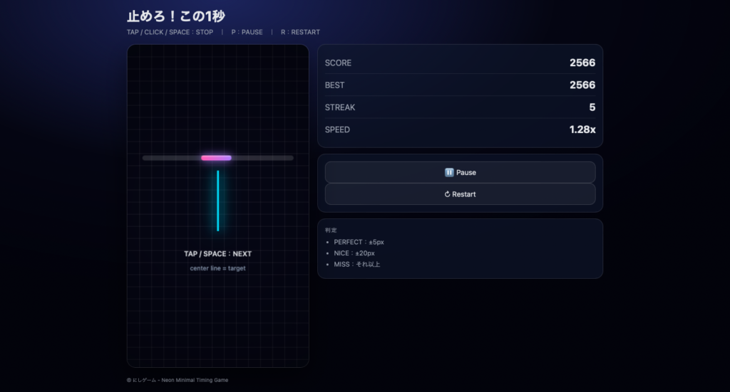 「止めろ!この1秒」 という、超シンプルな反射神経ゲームです。