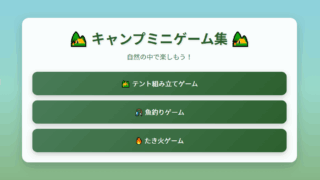 今回は、夏らしい3種類のミニキャンプゲームです。PC版が、下のゲーム画面をクリックするとプレイできます!夏と言えばアウトドア!アウトドアと言えばキャンプ!ですが、私自身アウトドアはちょっと苦手で。。。なので、ゲームでせめて雰囲気だけでも味わ...